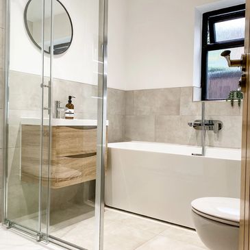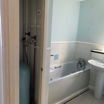 Hot water tank was removed to create more space. We completely removed everything from this bathroom including all the flooring back to beams and renewed all plumbing and electrics. The results are outstanding.